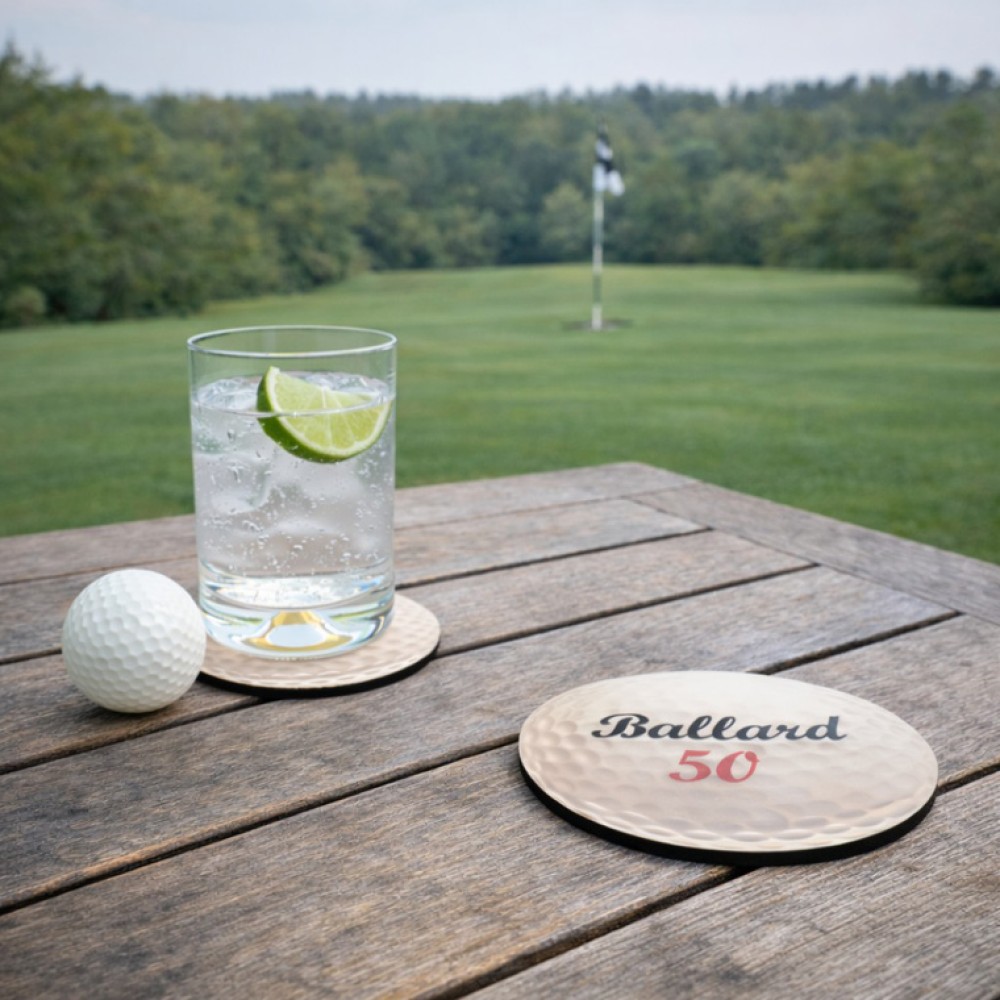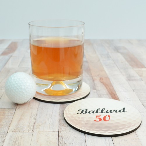Designed to look like a classic golf ball, our coaster can be personalised with any name and number of your choice.